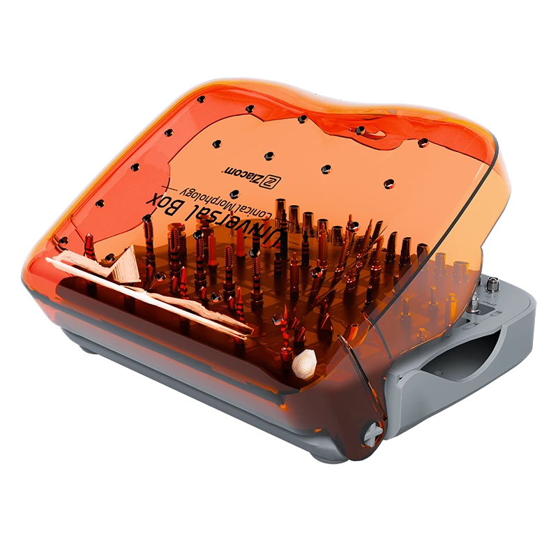 La Caja Universal es la solución perfecta para la implantología moderna, adaptándose a tres sistemas de implantes gracias a su diseño versátil y optimizado. Su estructura permite un acceso rápido al instrumental, garantizando un flujo quirúrgico eficaz y preciso. La Caja Universal ha sido diseñada para ofrecer la máxima versatilidad en todos los procedimientos.