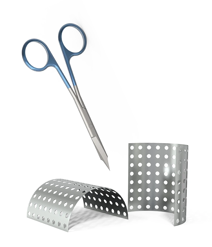 La lámina de titanio perforada ZS3 está diseñada para utilizarse como dispositivo de barrera física en procedimientos de regeneración ósea guiada, especialmente en regeneraciones verticales y horizontales. Su diseño permite adaptarla fácilmente, garantizando la estabilidad del coágulo sanguíneo y del sustituto óseo, consiguiendo excelentes resultados clínicos.